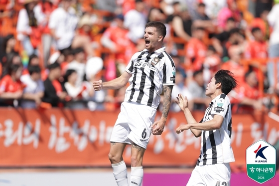 FC서울 바베츠가 25일 열린 하나은행 K리그1 2026 10라운드 강원FC와 원정 경기에서 전반 42분 선제골을 터뜨린 후 기뻐하고 있다. (한국프로축구연맹 제공)