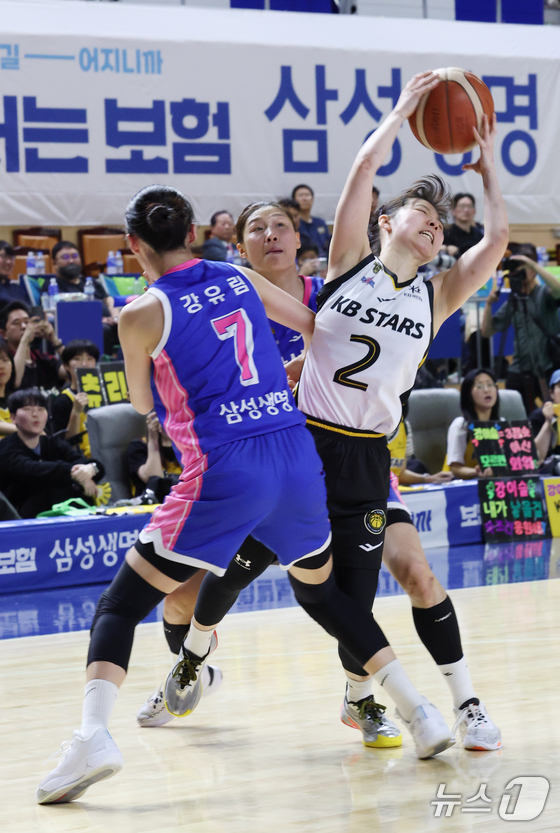 26일 경기 용인시 처인구 용인실내체육관에서 열린 'BNK 금융 2025-2026 여자프로농구 챔피언결정전 3차전' 용인 삼성생명 블루밍스와 청주 KB스타즈의 경기에서 KB스타즈 허예은이 돌파를 하고 있다. 2026.4.26 © 뉴스1 김영운 기자