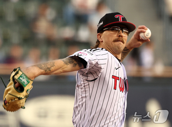 15일 서울 송파구 잠실야구장에서 열린 '2026 신한 SOL KBO리그' 열린 롯데자이언츠와 LG트윈스의 경기, LG 선발 웰스가 역투하고 있다. 2026.4.15 © 뉴스1 최지환 기자