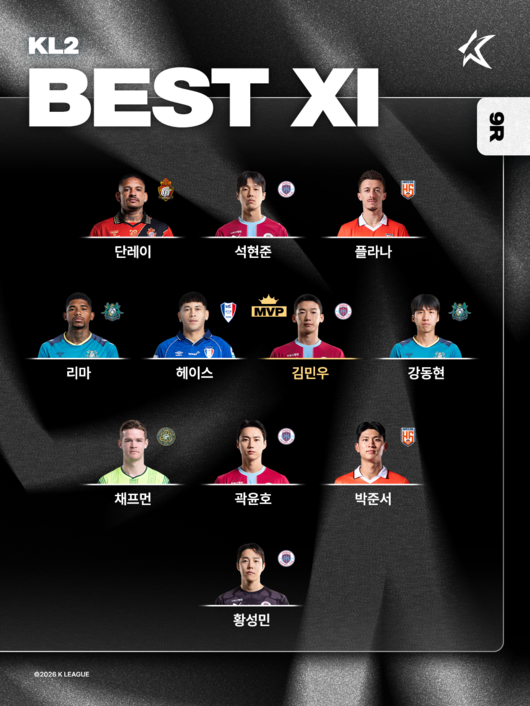 [하나은행 K리그2 2026 9R MVP, 베스트 팀/매치, 베스트11]