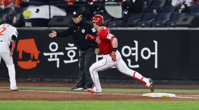 그 사이 SSG가 한 점을 더 도망갔다. 5회초 선두 에레디아가 몸에 맞는 공으로 걸어나간 뒤 한유섬의 병살타로 2사 주자 없는 상황, 최지훈이 우익수 오른쪽에 떨어지는 3루타로 기회를 살렸다. 그리고 류효승의 볼넷으로 1·3루 찬스가 이어졌고, 오태곤의 안타에 최지훈이 들어와 6-1이 됐다.