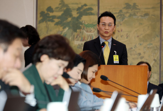 유현석 한국콘텐츠진흥원장 직무대리가 23일 서울 여의도 국회에서 열린 문화체육관광위원회의 한국콘텐츠진흥원 등 국정감사에서 업무보고를 하고 있다. (사진=뉴시스).