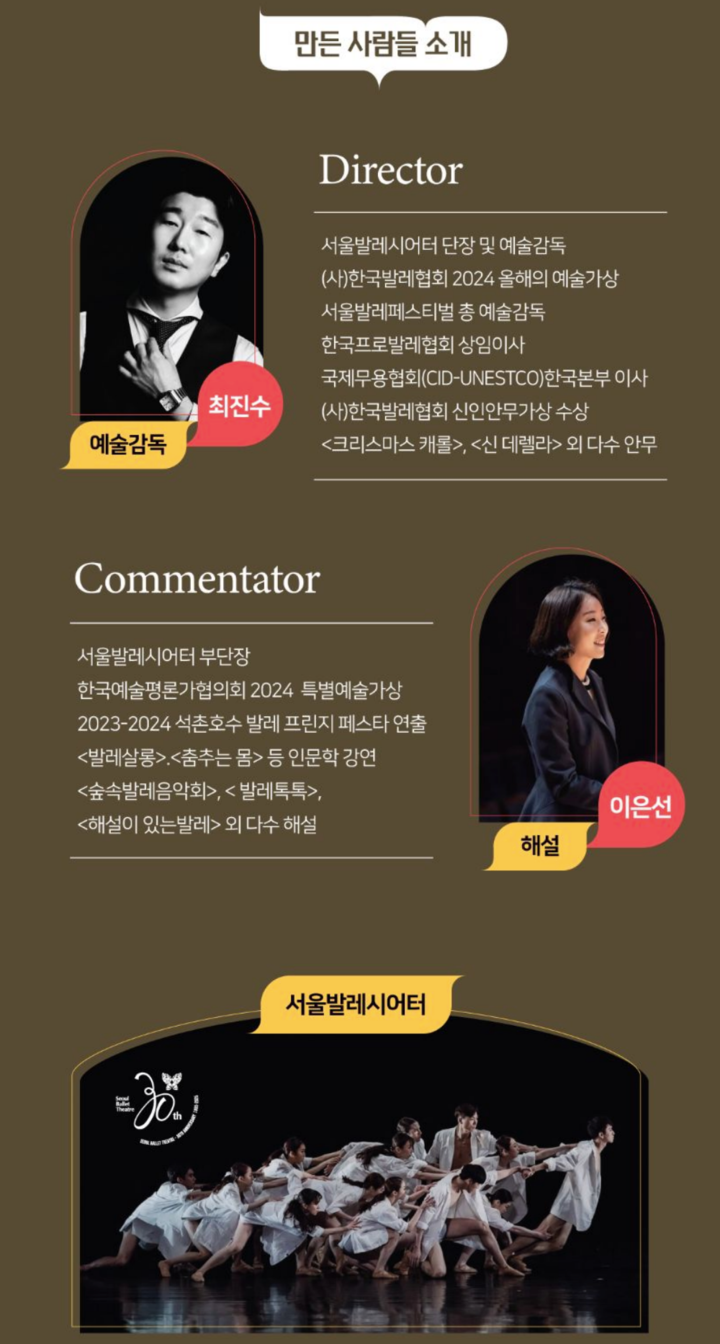 이 시리즈는 2023년 문훈숙 단장과 김지영 교수를 시작으로, 지난해에는 최태지 예술감독과 김용걸 교수가 해설을 맡아 화제를 모은 바 있다.