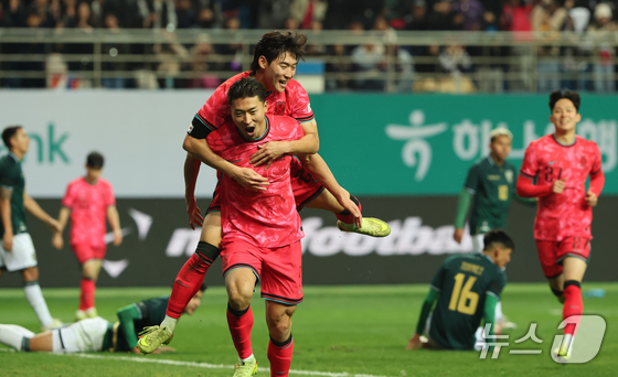 14일 오후 대전 유성구 대전월드컵경기장에서 열린 ‘하나은행 초청 국가대표팀 친선경기’ 대한민국과 볼리비아의 경기에서 조규성이 골을 넣고 기뻐하고 있다. © News1 김기태 기자
