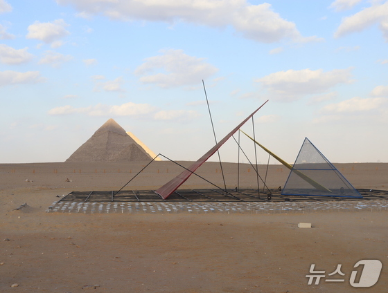 기자 피라미드 앞에 설치된 박종규 작가의 작품 '영원의 코드' © 뉴스1 김정한 기자