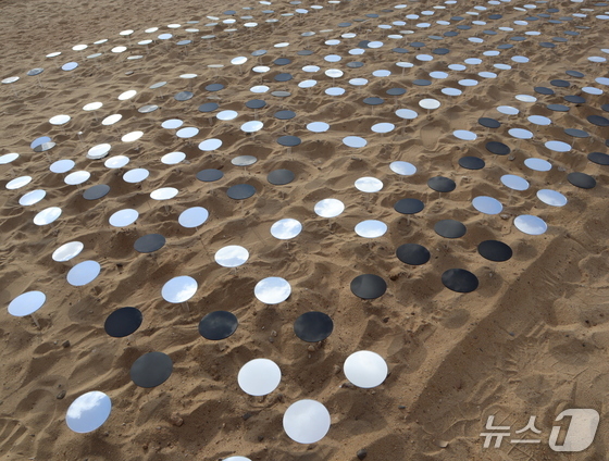 박종규 작가의 작품 '영원의 코드'에서 모스부호로 암호화한 아크릴 점 1000여 개 © 뉴스1 김정한 기자