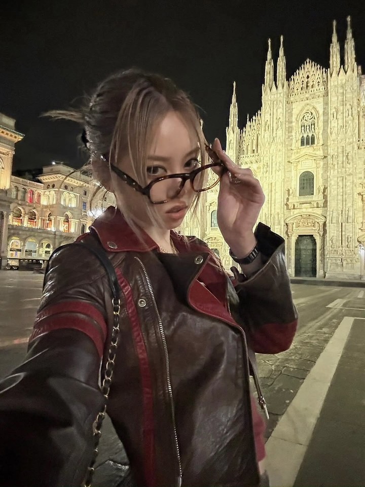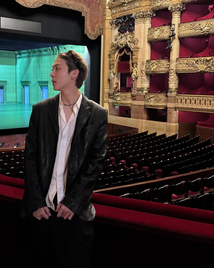 이어진 공연장 사진에서는 가죽 블레이저와 루즈한 화이트 셔츠를 매치, 클래식과 모던을 절충한 포멀 스트리트 룩으로 성숙한 무드를 자아냈다. 금속 프레임 안경과 슬릭한 헤어스타일이 전체적인 세련됨을 한층 끌어올렸다.