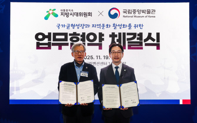 양 기관은 이번 협약을 통해 △국가균형성장과 지역문화 활성화를 위한 협력 및 공동사업 추진 △국가균형성장 및 지역문화 활성화 관련 행사, 전시, 교육, 홍보, 연구 공동 추진 △지역 간 문화격차 해소 및 지역의 정주 여건 개선 △지역문화 특성을 반영한 콘텐츠 개발 및 활용 △국립중앙박물관 소속 전국 13개 지역 국립박물관이 지역문화의 중심기관으로서 역할 확대를 위한 제도적·정책적 협력 등을 추진한다.