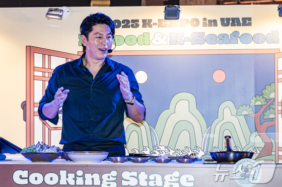 15일(현지 시각) 아랍에미리트 두바이 글로벌 빌리지에서 열린 '2025 K-엑스포 아랍에미리트: 올 어바웃 케이 스타일'에서 집밥 레시피의 대가 배우 류수영이 쿠킹쇼를 선보이고 있다. (사진가 장석현 제공, 재판매 및 DB금지) 2025. 11.16/뉴스1 © News1