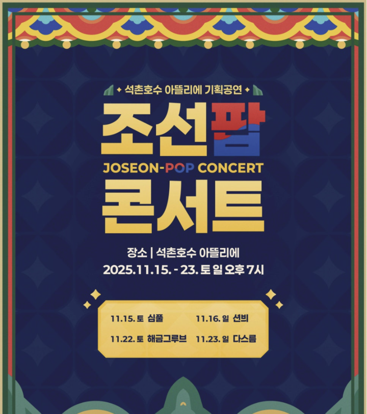 국악의 매력을 각기 다른 색깔로 다채롭게 채우는 무대가 펼쳐진다. 지난 15~16일 진행된 공연은 성황리에 마무리됐다. 오는 22~23일 양일간 오후 7시 석촌호수 아뜰리에에서 열리는 이번 공연은 22일 해금그루브, 23일 다스름(DASRUM)이 출연한다.