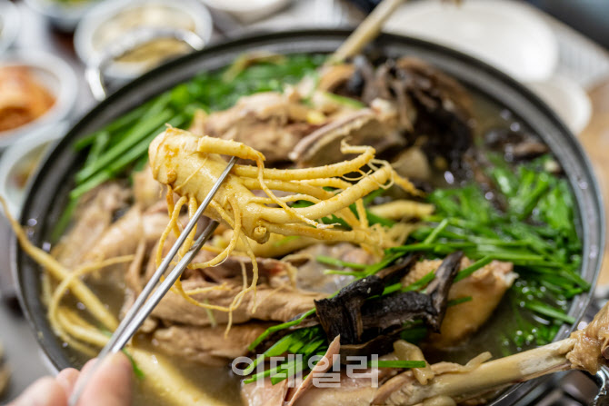 ‘신안골모퉁이’의 토종닭 인삼백숙은 그 방향성을 가장 잘 보여준다. 가마솥에서는 수증기가 계속 올라오지만 인삼 향은 과하게 나오지 않는다. 국물은 잔잔한 황톳빛을 띠고, 인삼의 은은한 향과 닭의 감칠맛이 한 숟가락 안에서 자연스럽게 섞인다. ‘뼛속까지 따뜻해지는 맛’이라는 표현이 어울릴 정도다.