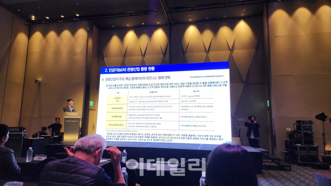 지난 18일 서울 드래곤시티에서 열린 ‘2025 문화체육관광 AI·디지털 혁신 포럼’에서 정광민 한국문화관광연구원 연구위원이 ‘관광산업 분야 AI 동향과 활용’에 대해 발표하고 있다.(사진=이데일리 강경록 여행전문기자)