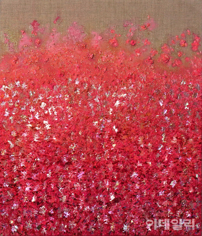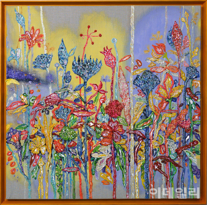 11월 29일까지 서울 강남구 도산대로85길 메타갤러리 라루나서 여는 개인전 ‘블러섬’(Blossom)에서 볼 수 있다. 캔버스에 혼합재료, 91×91㎝. 메타갤러리 라루나 제공.