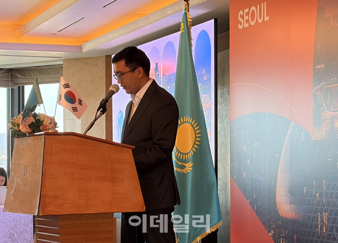 오늘(28일) 서울 롯데호텔에서 열린 ‘비짓 아스타나 관광청 로드쇼’에서 사빗 무하메욜리 아스타나 인베스트 이사회 부의장이 발표를 하고 있다. (사진=이민하 기자)