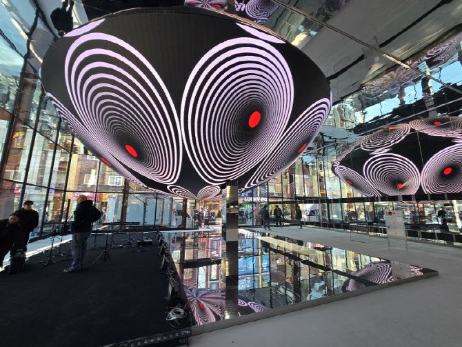 지름 12m 규모의 구(球) 형태 오브제 ‘스피어(Sphere)’다. 라스베이거스 스피어 공연장을 연상케 하는 이 오브제는 마찬가지로 다양한 미디어 아트로 성수동을 찾은 이들의 발걸음을 붙잡는다.