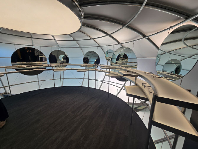 블루엘리펀트 스페이스 성수 2층의 스피어 중단부. 구체 내부에도 전시공간이 있어 설치예술 등 다양한 큐레이션이 가능하다.(사진=황영민 기자)