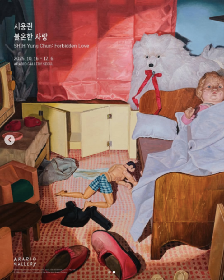 대만 작가 시용쥔의 국내 첫 개인전 '불온한 사랑'이 지난 10월 16일부터 오는 12월 6일까지 아라리오 갤러리에서 열려 그의 독특한 세계관을 선보인다. 이번 전시는 호텔 룸, 복도, 공연 무대 등 총 7개의 가상 무대를 배경으로 펼쳐지는 불가사의한 사건들을 소재로 삼아 하나의 거대한 환상적 세계관을 구축한다.