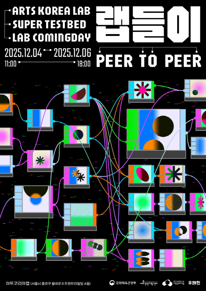 [이데일리 김미경 기자] 문화체육관광부는 (재)예술경영지원센터와 함께 오는 4~6일 서울 종로구 아트코리아랩에서 2025 예술-기술 융합 수퍼 테스트베드 지원사업(이하 수퍼 테스트베드) 과정공유회 ‘랩들이 : PEER to PEER’를 개최한다고 1일 밝혔다.