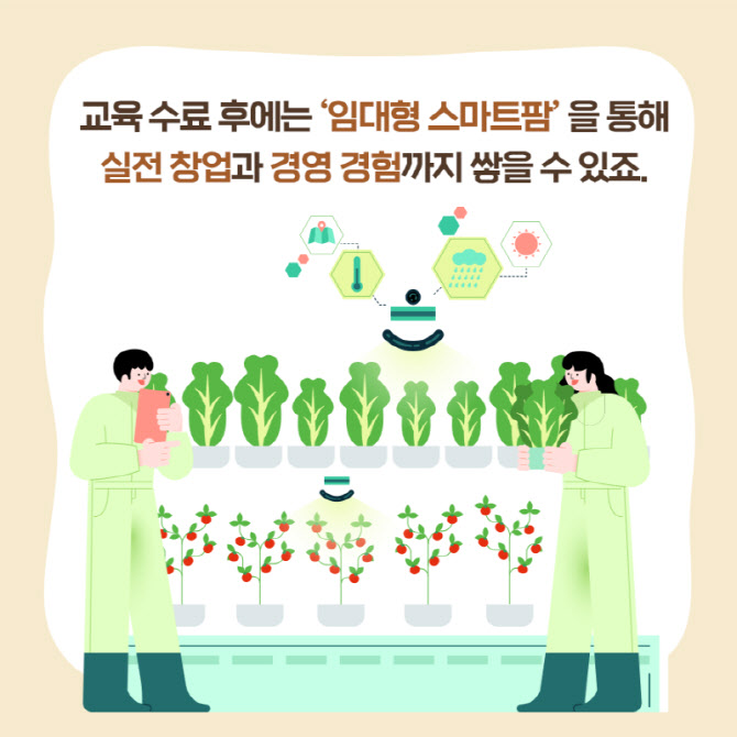 교육 수료 후에는 ’임대형 스마트팜‘ 을 통해 실전 창업과 경영 경험까지 쌓을 수 있죠.