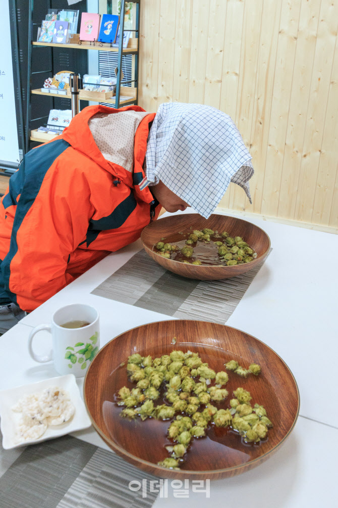 제천의 산과 들에서 자라는 맥주 원료 홉은 이곳에서 전혀 다른 치유의 방식으로 변한다. 유럽과 미국 스파 문화에서 먼저 자리 잡은 홉 테라피를 제천에서 만난다. 꽃차처럼 은은한 홉 향은 후각과 피부를 동시에 자극해 심신을 이완시키는 효능이 있다.