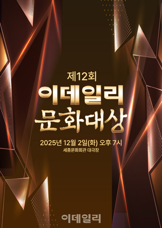‘제12회 이데일리 문화대상’은 이데일리가 주최하고 곽재선문화재단이 주관하며 문화체육관광부·우리은행·KG·할리스가 후원한다. 시상식은 유튜브 채널 ‘이데일리 프렌즈’를 통해 생중계한다.