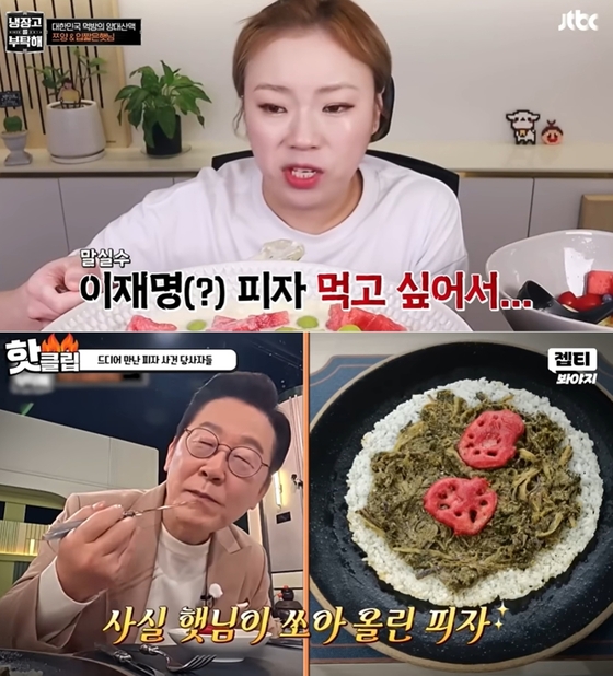 자신의 방송에서 말실수를 하고 있는 '입짧은햇님' (위), 지난 10월 방송된 '냉장고를 부탁해'에 출연한 이재명 대통령.(아래) 출처=JTBC '냉장고를 부탁해'