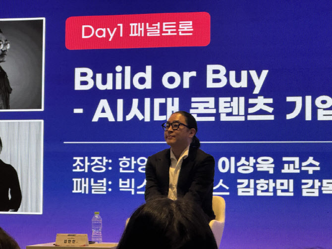 김한민 감독이 4일 서울 강남구 삼성동 코엑스 컨퍼런스룸에서 열린 'AI 콘텐츠 페스티벌 2025'에 기조연설자로 참석해 패널 토론에 참여 중이다.(사진=이데일리 최희재 기자)