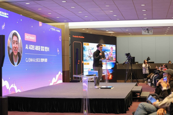 정 팀장은 이런 AI의 한계를 극복하기 위해 CJ ENM에선 3D 모델링 등 정밀함과 일관성을 담보할 수 있는 이미지 기술 툴과 AI 툴을 연계 활용하는 방안을 대안으로 택하고 있다고 소개했다.