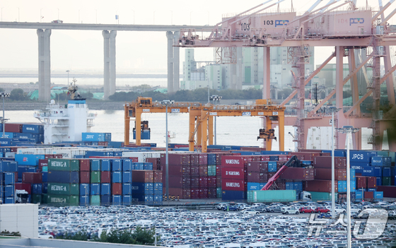 경기 평택시 포승읍 평택항에 수출용 컨테이너들이 쌓여있는 모습. 2025.10.16/뉴스1 © News1 김영운 기자