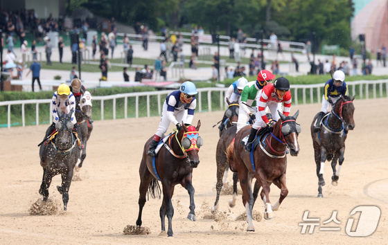제8회 OBS 코리아컵&코리아스트린트 경주가 열린 7일 경기 과천시 렛츠런파크 서울에서 경주마가 힘차게 달리고 있다. 2025.9.7/뉴스1 © News1 김영운 기자