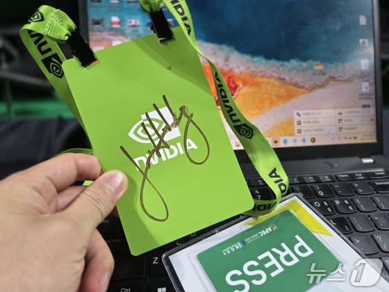 31일 경주 예술의전당 원당홀에서 열린 젠슨 황 엔비디아 CEO 기자간담회에서 받은 젠슨 황 CEO의 사인. 2025.10.31/뉴스1 © News1 박기범 기자