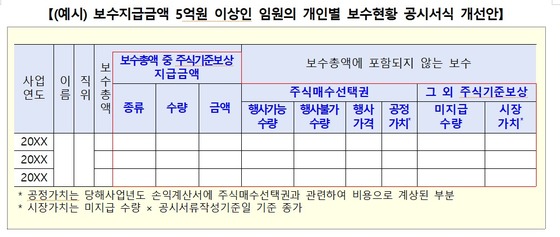 앞으로는 최근 3년간 총주주수익률(TSR)과 영업이익 등 성과지표를 임원 전체 보수총액 공시서식에 함께 기재해 성과와 보수 간 관계를 명확히 보여주도록 한다.