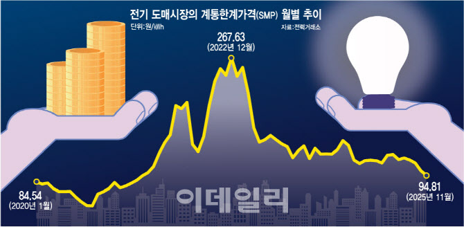 한전을 비롯한 전력산업계의 원가 부담이 그만큼 낮아졌다는 평가다. SMP는 독점적 전기판매 공기업인 한전이 발전사로부터 전기를 사오는 도매시장 기준가격이다.