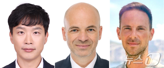 왼쪽부터 박민우 현대차그룹 AVP본부장 겸 포티투닷 대표, 만프레드 하러 현대차그룹R&D본부장, 밀란 코빅 현대차그룹 자문역 및 보스턴다이나믹스 사외이사.(현대차그룹 제공)© News1 김지영 디자이너