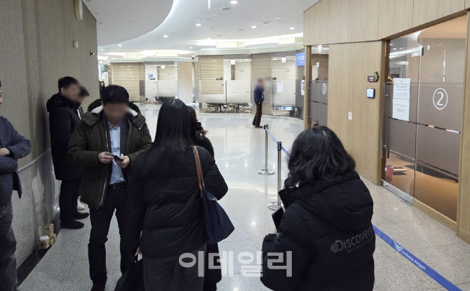 20일 오후 인천국제공항공사 서편 회의실 앞에서 면세점 사업권 입찰 참가 관계자들이 접수 시간 종료를 앞두고 대기하고 있다. (사진=한전진 기자)