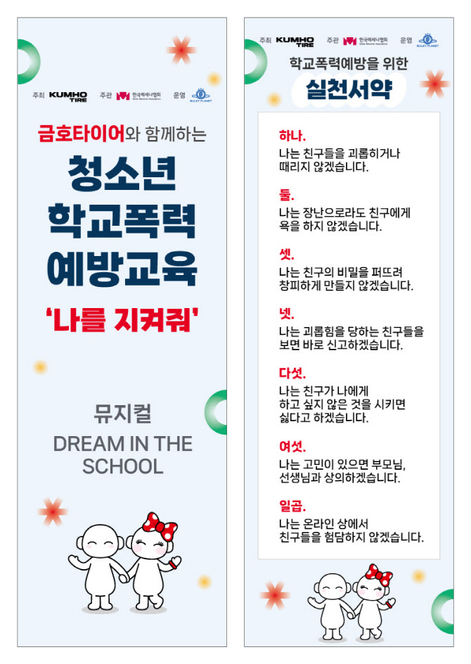 금호타이어의 ‘나를 지켜줘’ 활동은 아동, 청소년을 위한 교통안전 교육과 학교폭력 예방교육을 예술과 접목시킨 프로그램으로, 학생들의 올바른 사고력과 위험상황 대응력을 제고하기 위해 2020년부터 금호타이어와 한국메세나협회가 함께 추진하고 있는 사업이다.