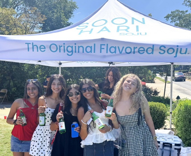 롯데칠성음료가 미국 과일소주 시장 선점을 위해 지난해 8월 미국 주요 대학 풋볼경기장에 순하리 부스를 설치하고 시음행사를 진행했다. (사진=롯데칠성음료)