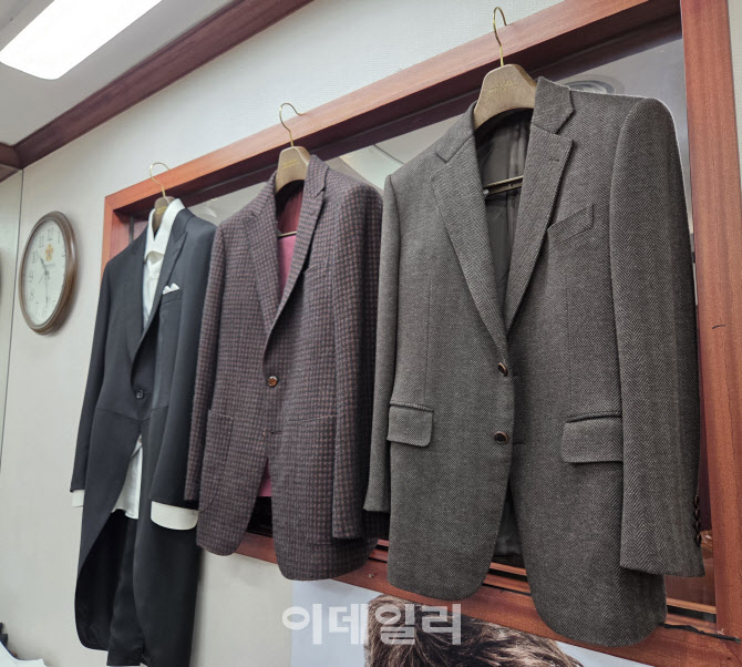 골드핑거 매장에 진열된 양복. (사진=김응태 기자)