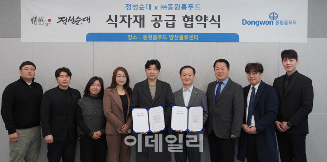 이번 협약으로 동원홈푸드는 전국 70여개 정성순대 매장에 연간 110억원 규모의 식자재를 공급한다. 직접 제조한 소스와 드레싱, 가공식품, 농축수산물 등 3만여종의 식자재를 제공할 예정이다.