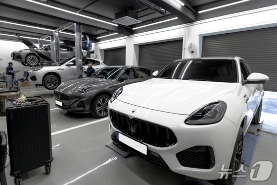 22일 공식 개관한 경기 성남의 마세라티 판교 서비스센터에서 엔지니어들이 마세라티 차량을 수리하고 있는 모습(마세라티 코리아 제공). 2026.01.22.