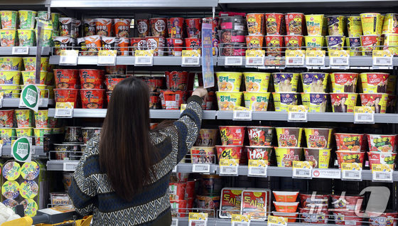 서울 한 대형마트 라면 진열대 모습. © News1 김명섭 기자
