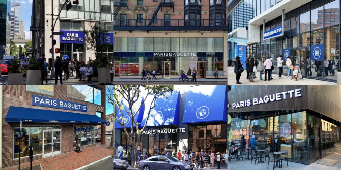 북미 지역에 운영중인 파리바게뜨 매장들. 왼쪽 위부터 시계방향으로 뉴욕 맨해튼 브로드웨이점, 뉴욕 맨해튼 렉싱톤 에비뉴점, 캐나다 토론토 영앤쉐퍼드점, 필라델피아 유니버시티점, 캘리포니아 DTLA점, 뉴저지 레드뱅크점. (사진=파리바게뜨).