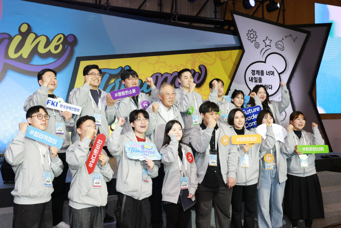 류진 한국경제인협회 회장을 비롯한 캠프 참가자들이 29일 강릉 라카이 샌드파인 리조트에서 열린 ‘2026 한경협 퓨처 리더스 캠프’에 참석해 기념촬영을 하고 있다.(사진=한경협)