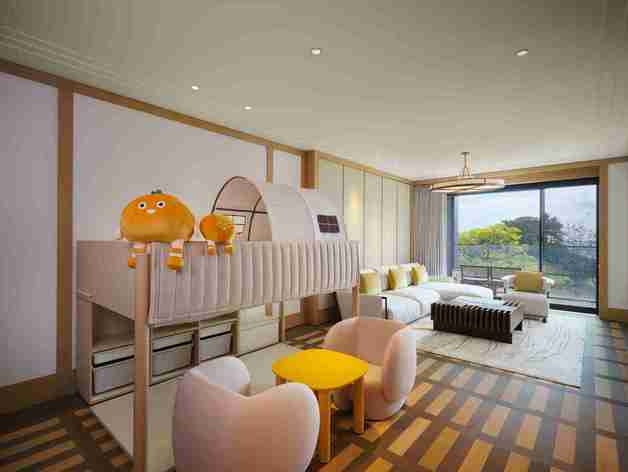 JW메리어트제주리조트&스파는 가구 브랜드 일룸과 협업한 '더 패밀리' 패키지를 선보인다. 1베드룸 레지던스 객실에 일룸의 2층 벙커 침대와 키즈 소파 등 전용 가구를 배치해 아이들만의 독립된 아지트를 구현했다.