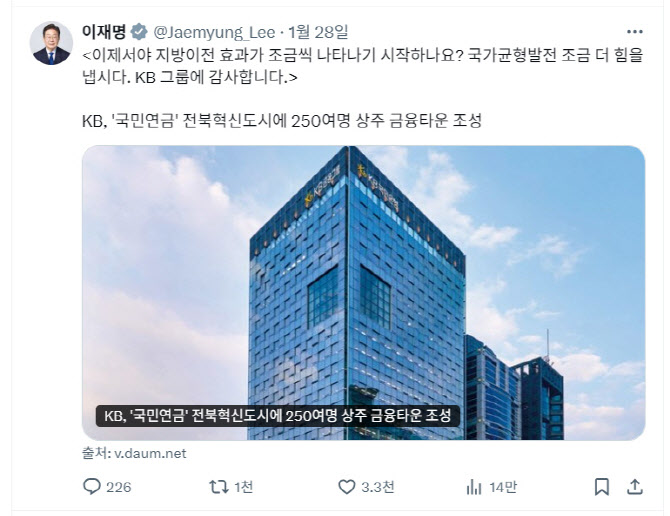 이재명 대통령 소셜미디어 X 페이지 갈무리