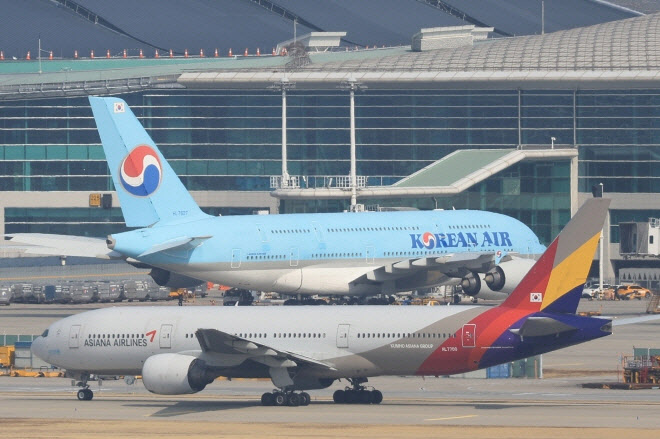 천공항 계류장 및 활주로에 놓인 대한항공과 아시아나항공 여객기 모습. (사진=연합뉴스)
