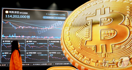 서울 강남구 빗썸 라운지에 설치된 암호화폐 시세 현황판. 2026.2.6 © 뉴스1 구윤성 기자