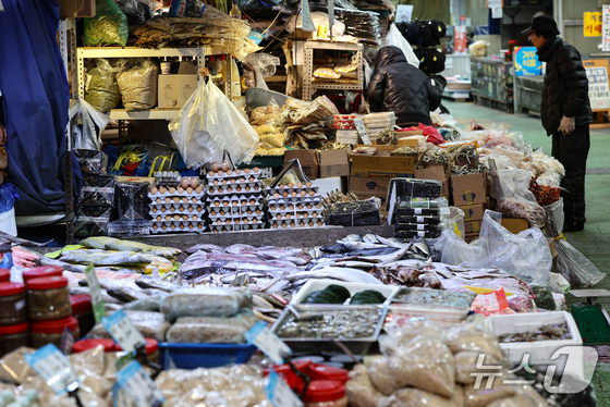 설을 앞둔 9일 서울 마포구 망원시장에서 시민들이 장을 보고 있다. 설 차례상 차림에 필요한 주요 성수품 구매 비용이 작년보다 4% 넘게 오른 것으로 나타났다. 서울시농수산식품공사가 9일 발표한 대형마트, 전통시장, 가락시장(가락몰) 등 25곳을 조사한 '설 차례상 차림 비용'을 보면 올해 설 전통시장 구매비용은 23만3782원으로 전년 대비 4.3% 상승했고 대형마트는 27만1228원으로 4.8% 올랐다. © 뉴스1 김도우 기자