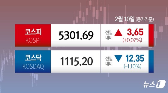 10일 코스피는 전일 대비 3.65p(0.07%) 상승한 5301.69로 마감했다. 장 초반 5363.62까지 상승했지만 개인 매도세가 쏟아지면서 상승폭을 줄였다.