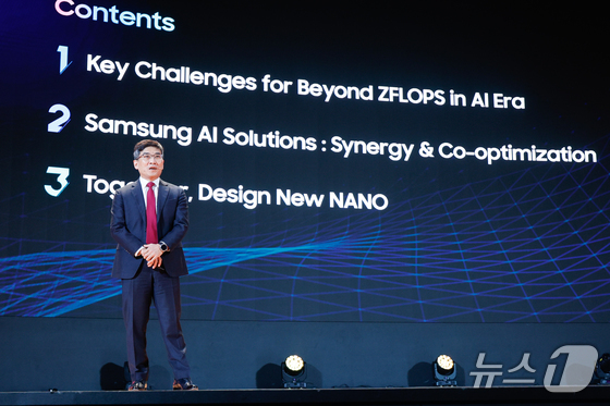 송재혁 삼성전자 디바이스솔루션(DS) 부문 최고기술책임자(CTO) 사장이 11일 서울 강남구 코엑스에서 열린 세미콘 코리아 2026에서 '제타플롭스(ZFLOPS) 시대를 넘어, 다음 단계는?'을 주제로 기조연설을 하고 있다. 2026.2.11 © 뉴스1 안은나 기자